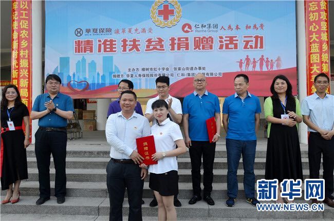 新華網南昌5月17日電(通訊員許國雄 張成)5月15日,仁和集團與合作伙伴華夏人壽保險股份有限公司(以下簡稱華夏人壽)精準扶貧捐贈儀式在江西樟樹市張家山街道辦事處舉行。宜春市紅十字會常務副會長陳愛紅、樟樹市委副書記尹志來、樟樹市政府副市長晏衛(wèi)華等領導出席。