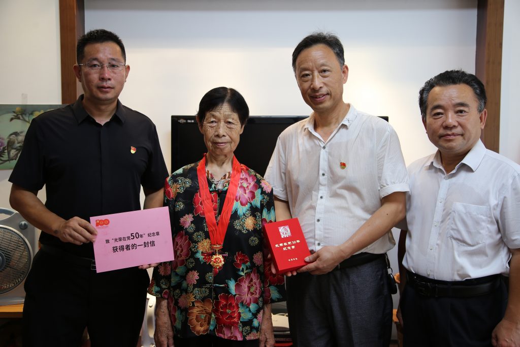 6月29日下午,集團黨委班子成員走訪慰問了部分黨齡滿50年的退休老黨員,為他們頒發(fā)“光榮在黨50年”紀(jì)念章,向他們致以崇高敬意和熱烈祝賀!今年,集團共有14名退休黨員獲此殊榮!在89歲老黨員陳寶珍家中,集團黨委書記周正如代表楊文龍董事長關(guān)切地詢問老人身體健康狀況和日常生活情況,感謝老人對仁和事業(yè)和醫(yī)藥健康事業(yè)的奉獻(xiàn),號召大家向老黨員學(xué)習(xí),傳承光榮傳統(tǒng)。