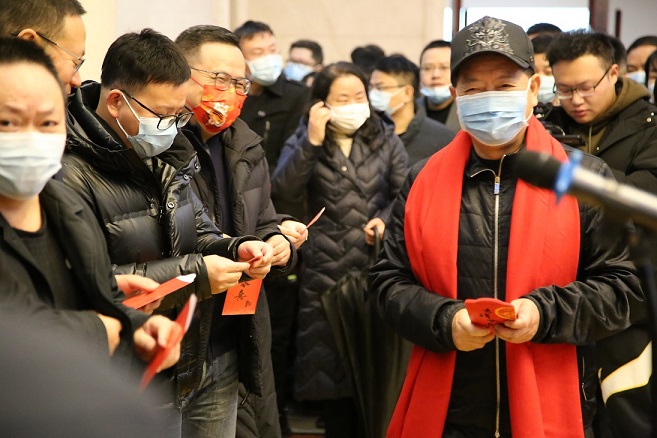 團(tuán)拜會(huì)結(jié)束后,楊總、肖總給參加團(tuán)拜會(huì)的干部員工派發(fā)了新春紅包,現(xiàn)場(chǎng)暖意融融。