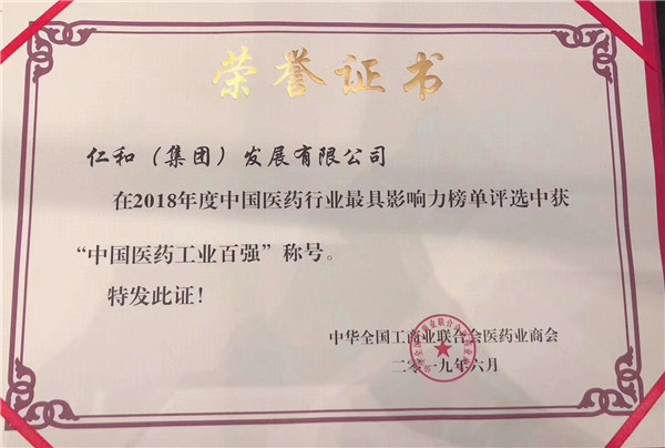 仁和集團榮膺2018年度中國醫藥工業百強 發布時間: 2023年04月23日 11:09:05 閱讀量: 7,197 下一篇:仁和集團榮獲國家藥監局藥品法制宣傳教育基地“先進單位”稱號上一篇:仁和藥業股份有限公司位列榜單中國中藥企業百強(第37位)