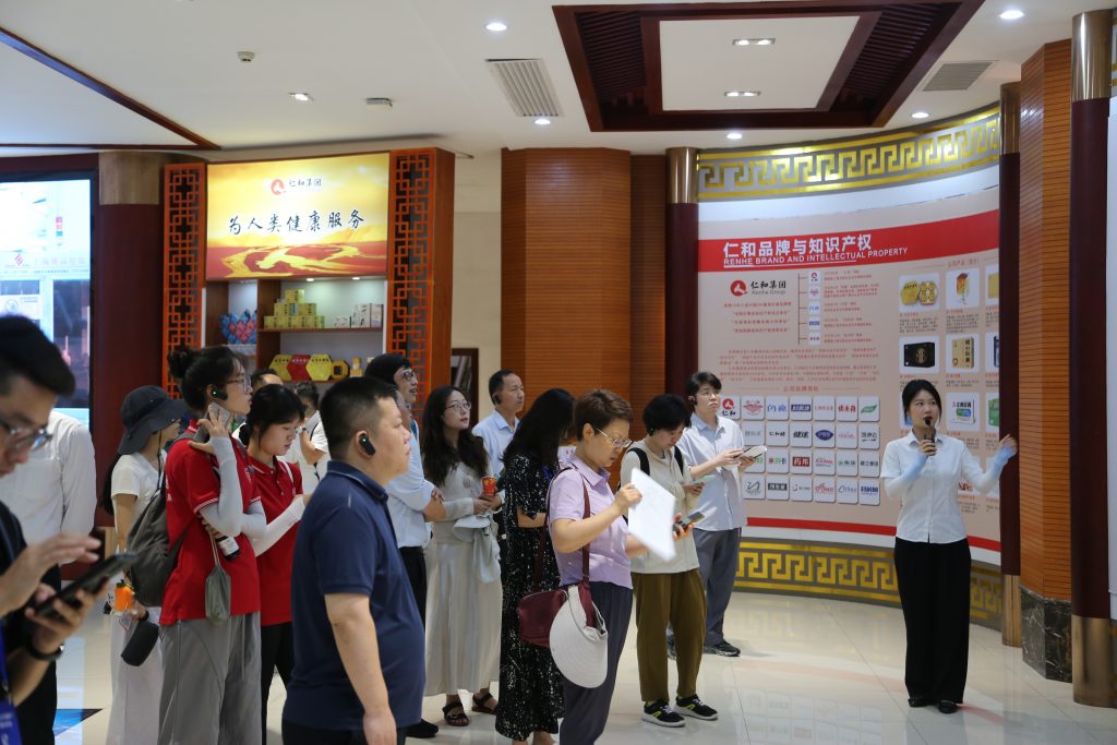 走進仁和863科技園,傳統中醫藥文化的深厚底蘊與現代工業文明的磅礴活力和諧共生,給采訪團留下深刻印象。園區匠心獨運的設計理念——以“懸壺濟世”為魂的葫蘆造型布局,百年古樟、古桂與現代化廠房的輝映,生動詮釋了仁和“為人類健康服務”的企業宗旨和根本遵循。采訪團重點考察了八卦廣場、企業文化展廳、智慧醫藥物流園、數字電商園及中藥經典名方車間,親身感受科技為古老產業注入的澎湃動力。