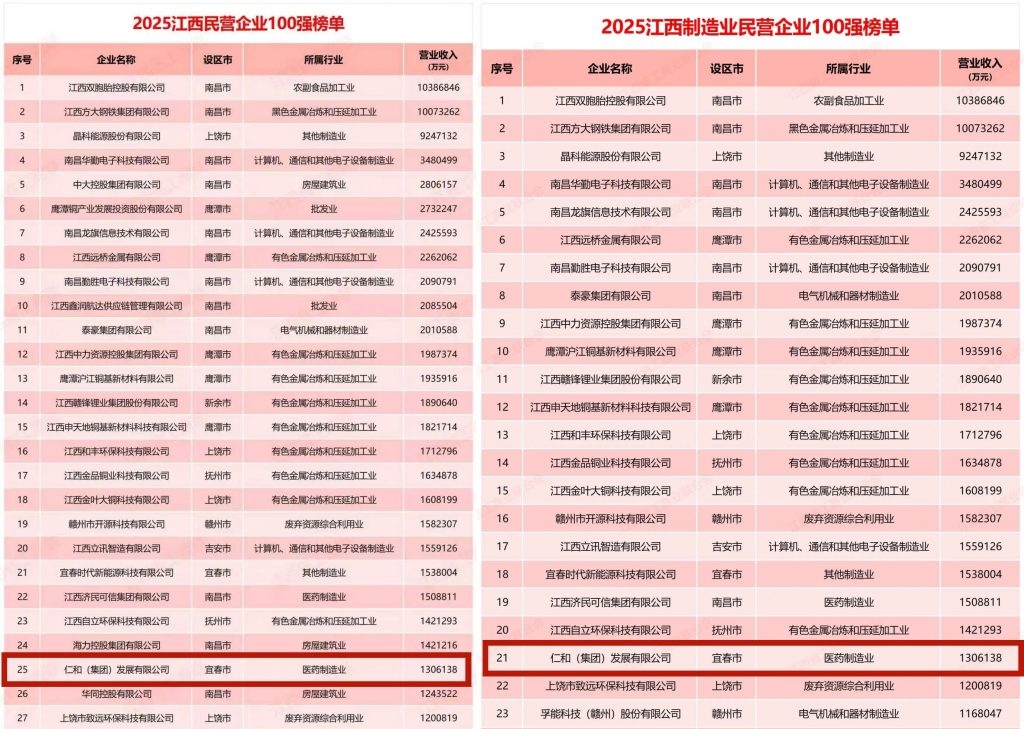 仁和集團(tuán)榮登2025江西民營企業(yè)百強(qiáng)榜