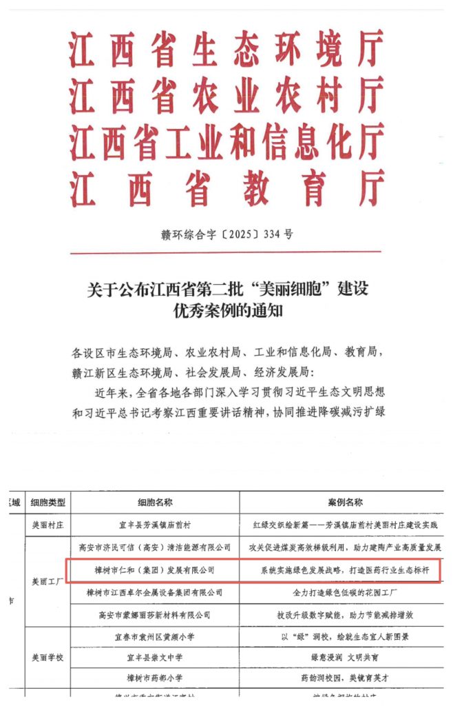 近日,江西省生態(tài)環(huán)境廳、省農(nóng)業(yè)農(nóng)村廳、省工業(yè)和信息化廳、省教育廳等四部門聯(lián)合公布全省第二批“美麗細(xì)胞”建設(shè)優(yōu)秀案例名單,仁和863科技園憑借系統(tǒng)化的綠色發(fā)展實(shí)踐和顯著的生態(tài)建設(shè)成效,成功獲評(píng)“美麗工廠”類優(yōu)秀案例。這一榮譽(yù)標(biāo)志著仁和集團(tuán)在推進(jìn)綠色制造、建設(shè)生態(tài)友好型工業(yè)園區(qū)方面取得的成果獲得省級(jí)權(quán)威認(rèn)定,為區(qū)域工業(yè)綠色低碳發(fā)展提供了示范樣本。