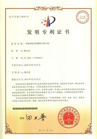 一種前列金丹膠囊的分析方法發明專利證書 發布時間: 2019年12月18日 11:50:40 閱讀量: 10,156 下一篇:一種口腔消毒衛生產品發明專利證書上一篇:一種清火膠囊內容物的水分含量的分析方法發明專利證書