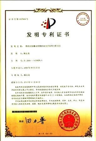 一種清火膠囊內(nèi)容物的水分含量的分析方法發(fā)明專利證書 發(fā)布時(shí)間: 2019年12月18日 11:51:26 閱讀量: 10,731 下一篇:一種前列金丹膠囊的分析方法發(fā)明專利證書上一篇:一種濕毒清片的分析方法發(fā)明專利證書